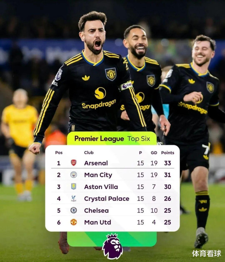 本赛季英超前15轮过后,曼联取得7胜4平4负的成绩,目前排名积分榜的第6位,与欧冠区仅相差1分。